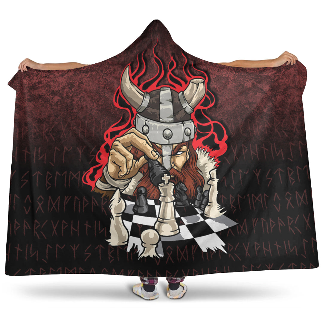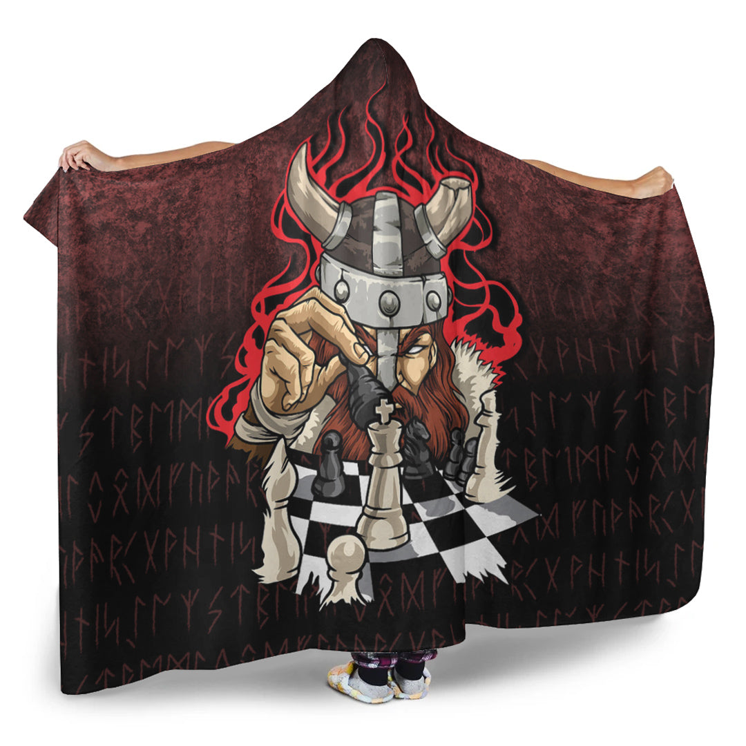 Brave Viking With Chessboard Chess Hooded Blanket