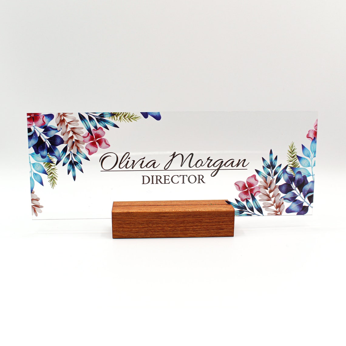 Name Plate On Desk For Office Decor Desktop Personalized Secretary Sign Gift Custom Nurses Teacher Friend School Wood Floral Flowers