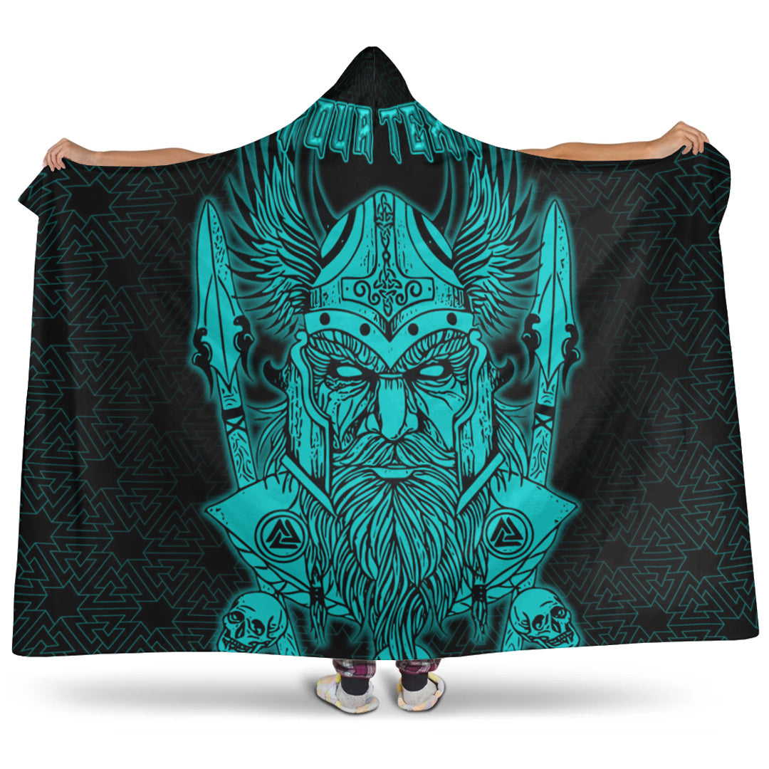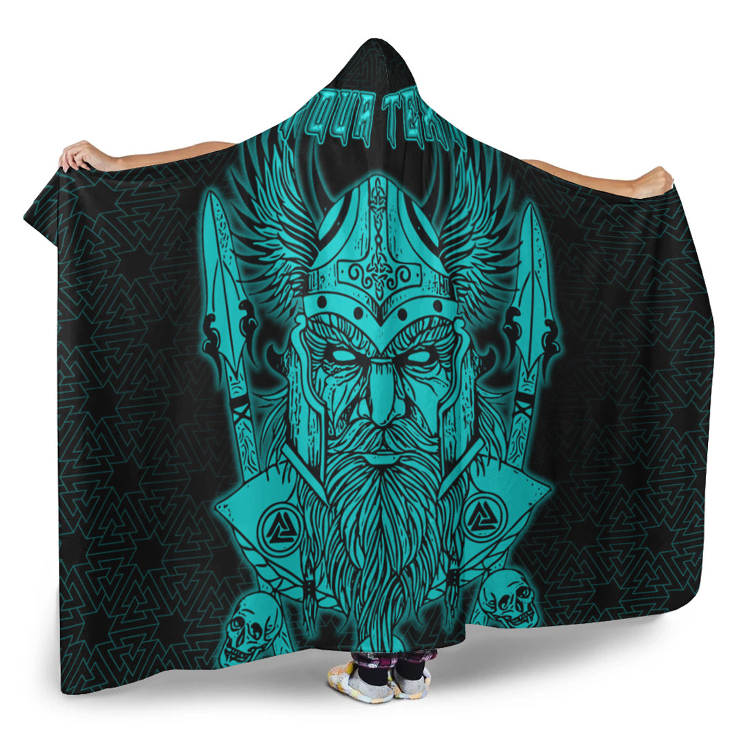 Odin And Raven Turquoise Text Viking Homeset Hooded Blanket